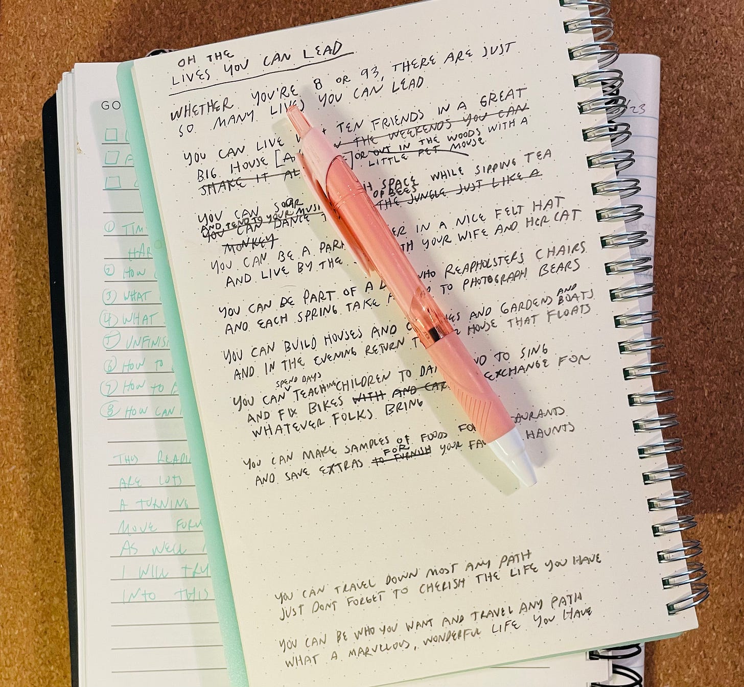 Like many others, I’m really great at coming up with ideas for projects but not so good at seeing them through to completion. For a while this really frustrated me and though I still would like to set goals to get my projects finished, I’ve been really enjoying exploring new ideas and swimming in the ideation phase. When I get blocked with drawing or painting, I like to sit with my sketchbook and see what words come out. (If this doesn’t work, I’ll look up a cute animal to draw— works every time!)