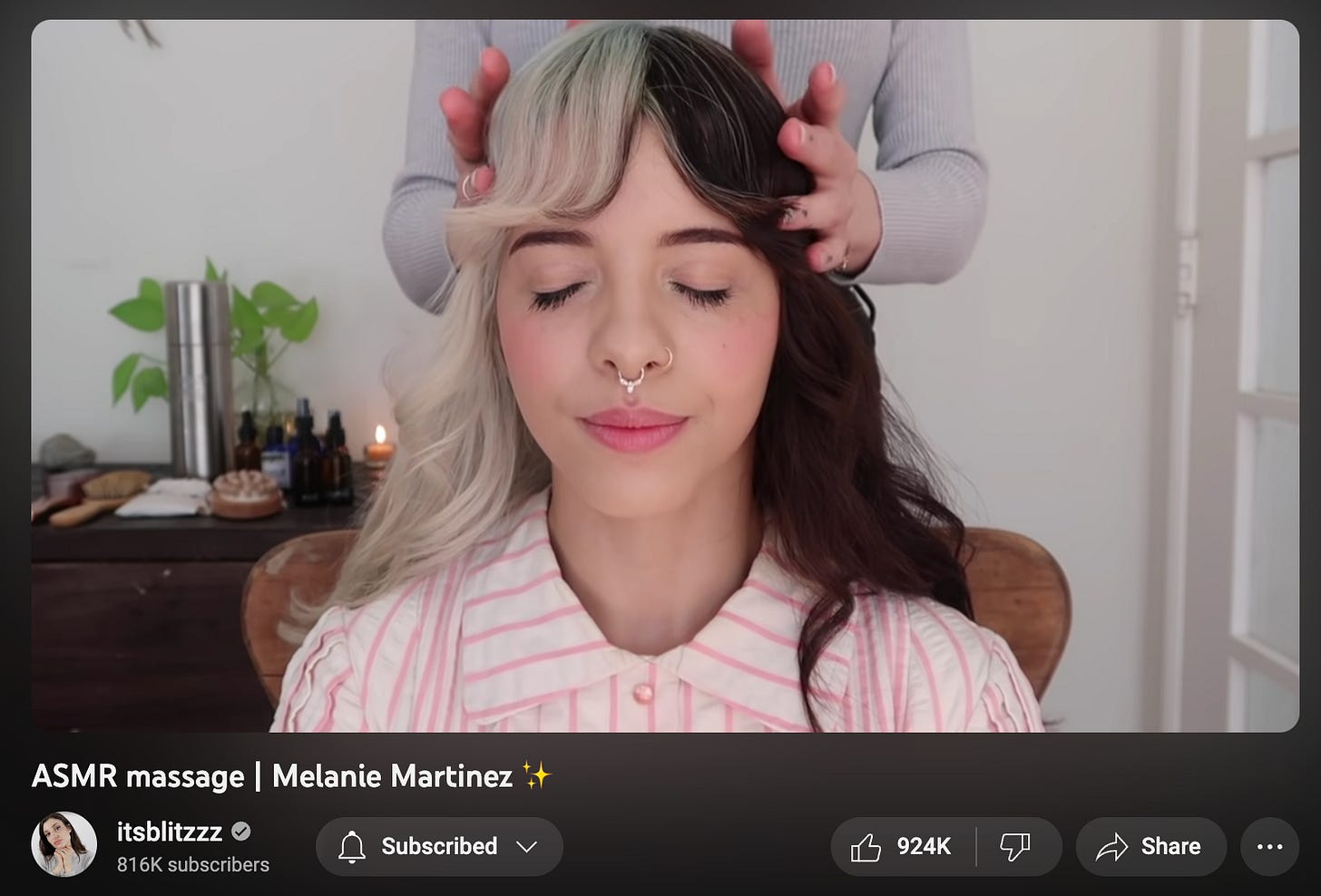 itsblitzzz - ok so I honestly am not into her life updates (love her though and wish her the best!) — I’m just here for the ASMR! She does some veryyy relaxing massages on people and has inspired me to be better about moisturizing.