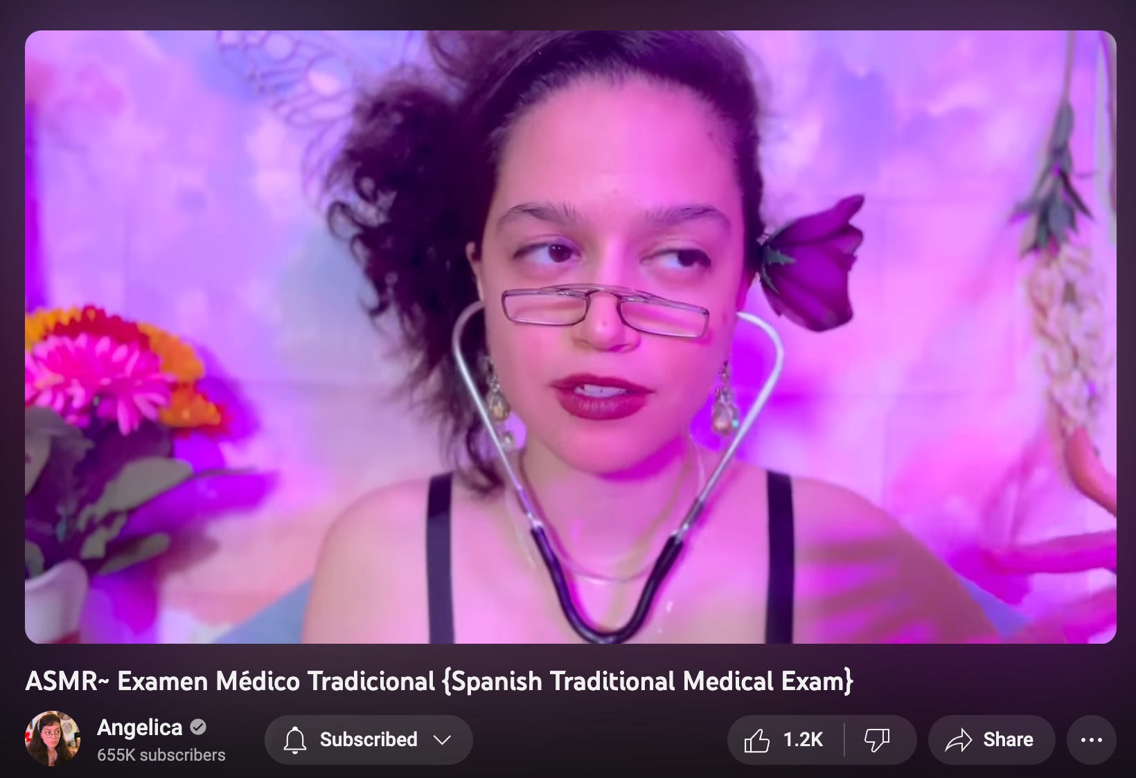Image above: she didn’t quite make the list, but Angelica ASMR gets an honorable mention. Here she is pictured giving a very official medical exam.