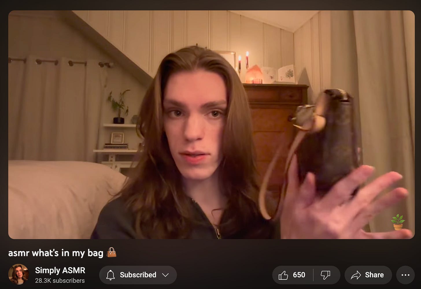 Simply ASMR - This is the ASMR-tist who’s newest on my roster but I’m already obsessed! I love a simple lo-fi vid (and love a whats-in-my-bag vid!).