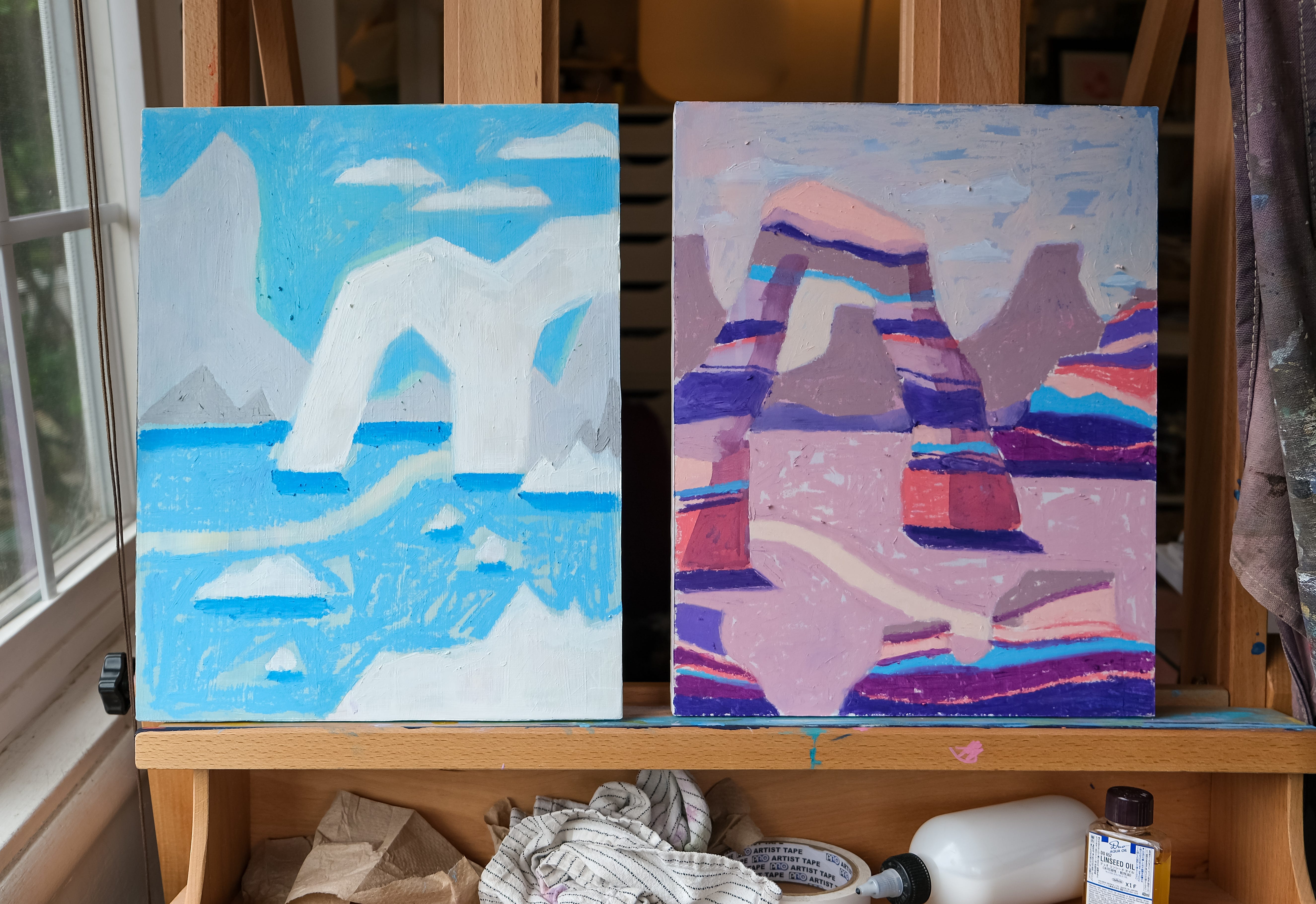 Image above: two works in progress, in which I’m trying to figure out the right balance between oils and pastels. it’s a journey!